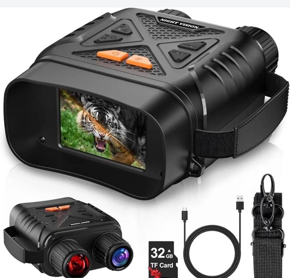 ★ محتويات العبوة: تتضمن حزمة نظارات الرؤية الليلية الكاملة: مناظير رؤية ليلية*1، كابل شحن*1، حزام رقبة*1، بطاقة ذاكرة 32 جيجابايت*1، دليل المستخدم*1. جاهزة للاستخدام فورًا. خارج الصندوق.